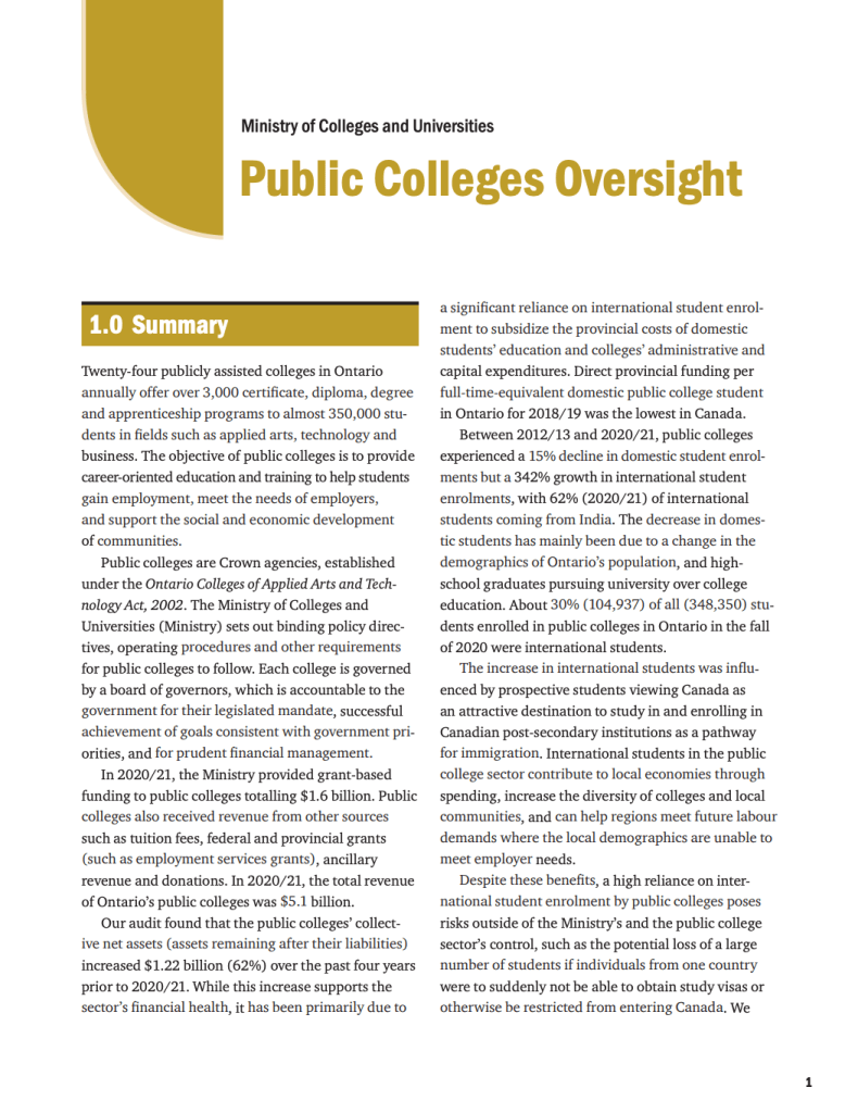 - Value-for-Money Audit: Public Colleges Oversight (2021) (82 pages)