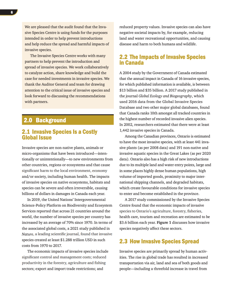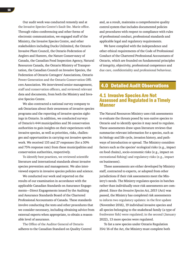 – Thomas Fitzmaurice, CPA (Auditor, Office of the Auditor General of Ontario) / Management of Invasive Species Report